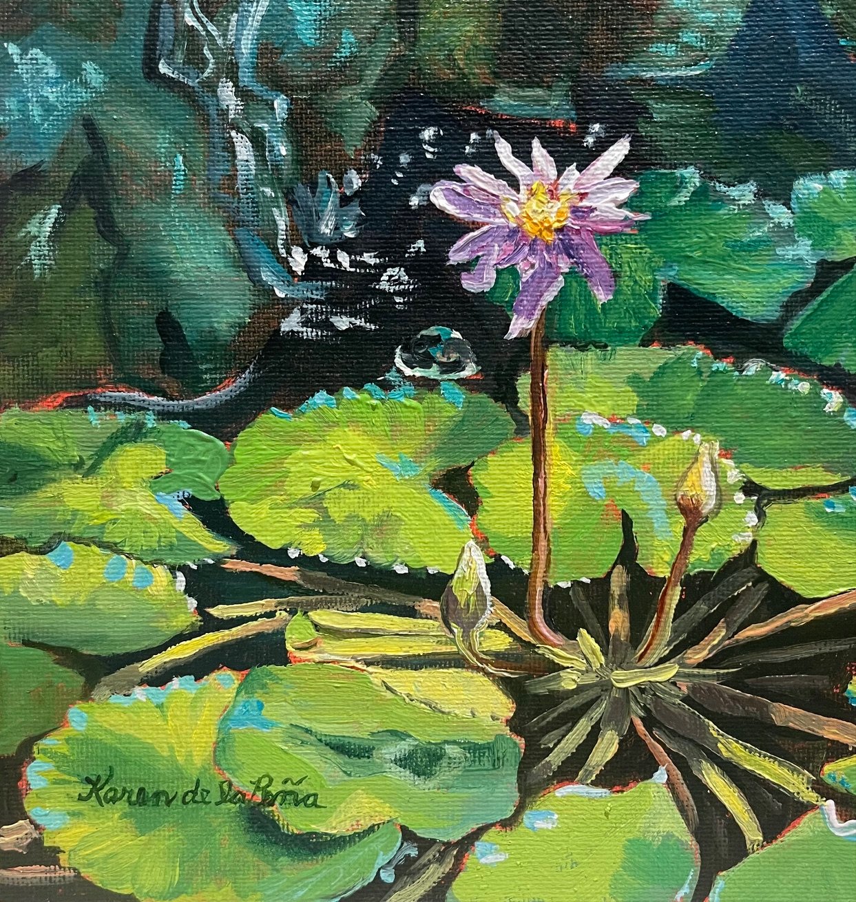 Featuring Artist Karen De La Peña. This accomplished artist is a multi-award-winning painter recognized for her expressive work in both studio and plein air. She received the prestigious Douglas Shively Award for Excellence at the Santa Paula Art Exhibition in both 2013 and 2014, as well as the People’s Choice Award. Her work has been exhibited widely, including the Faulkner Gallery in Santa Barbara, Olivas Adobe Gallery, and Pierpont Inn in Ventura, and is currently shown exclusively at Peregrine Galleries in Montecito.Her training includes workshops and studies with notable artists such as Dan Schultz, Aimee Erickson, and Margaret Dyer. Her work is held in private collections across the U.S. and Europe and has been featured in publications like Stitching with Beatrix Potter by Michelle Hill.